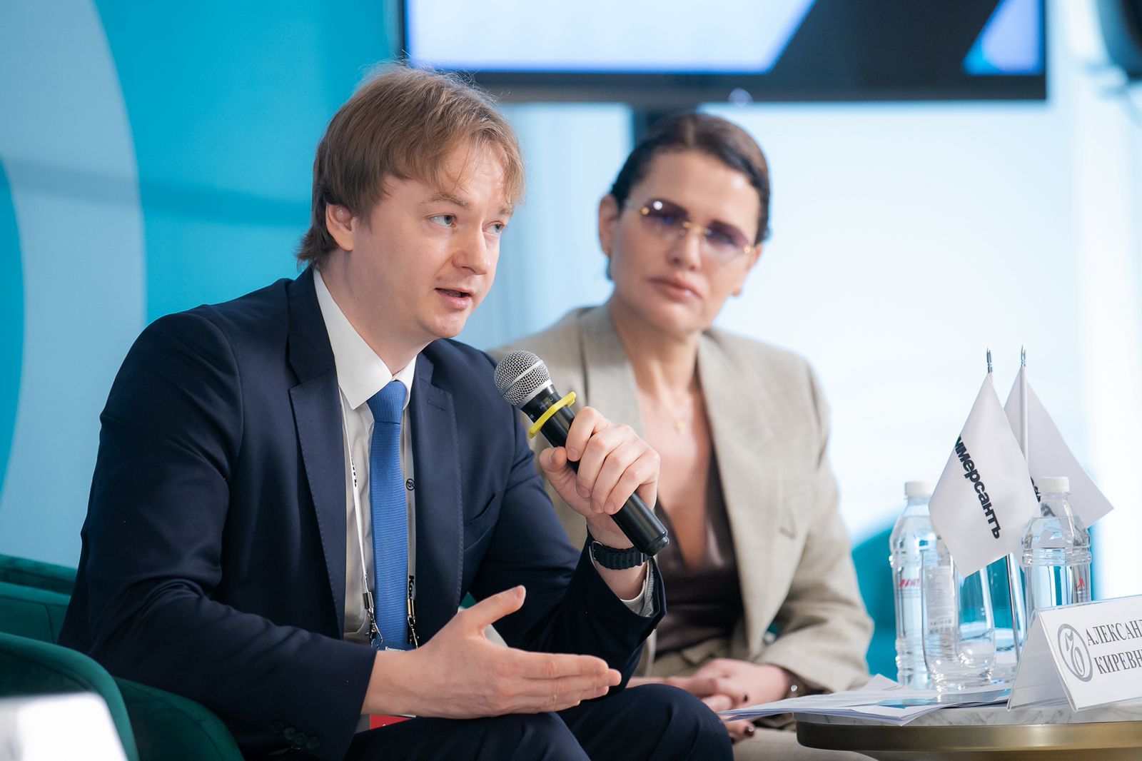 Мероприятие было разбито на две сессии. Модератором первой из них — «Современная промышленная политика: тренды и вызовы-2023» — выступил Сергей Соболев, ведущий радиостанции «Коммерсантъ FM». Алексей Матушанский, директор департамента стратегического развития и корпоративной политики Министерства промышленности и торговли Российской Федерации, отметил, что в целом страна справилась со сложностями, возникшими в прошлом году, и пессимистичные прогнозы не оправдались. «Произошла переориентация на внутренний рынок, рынки дружественных стран, и это нивелировало негативные факторы»,— подчеркнул он. Инвестиционный цикл не был остановлен, компаниям помогали наладить производство.