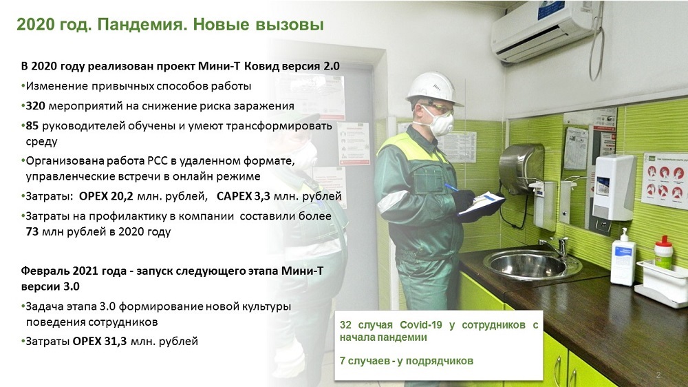 В этом году комбинат продолжил реализацию проекта «Мини-Т Ковид» уже в версии 3.0. Он направлен на закрепление новой культуры поведения сотрудников.