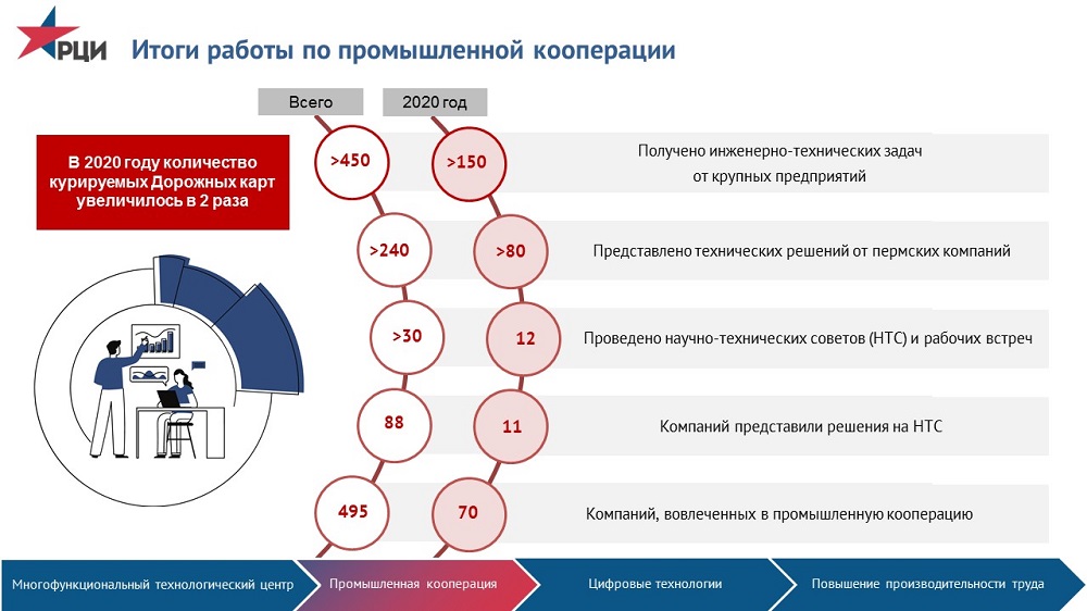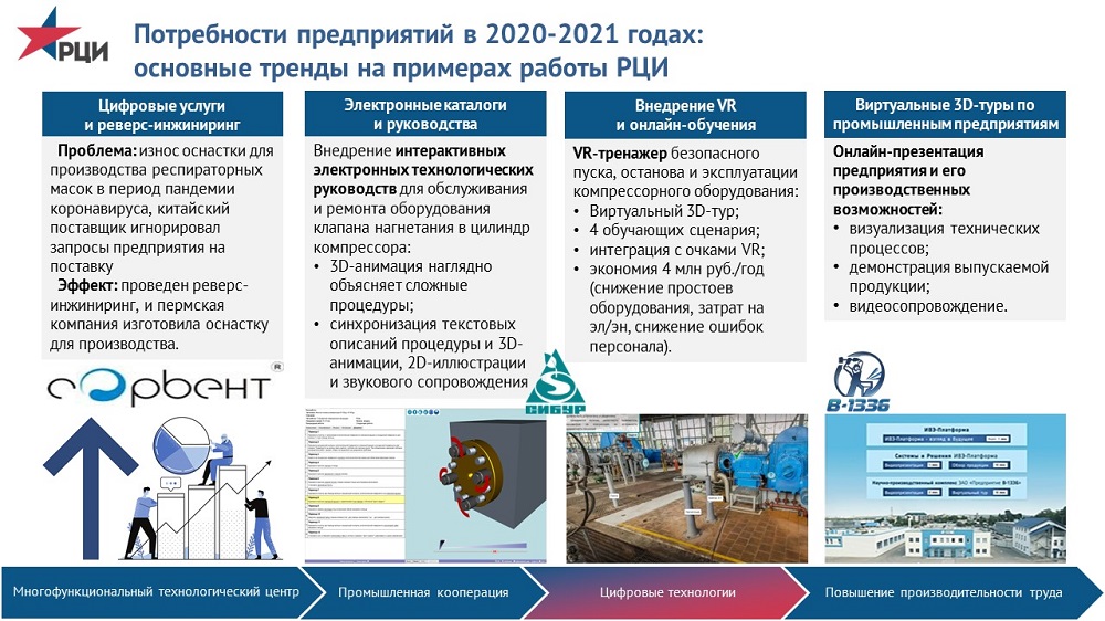 Активно работал Региональный центр инжиниринга (РЦИ), продолжая помогать малому бизнесу заключать контракты с крупными игроками и искать для предприятий новые технологические решения для производства. По словам заместителя директора РЦИ Александра Лаврина, наиболее востребованными в 2020 году стали цифровые услуги, внедрение VR и онлайн-обучения, разработка электронных каталогов и руководств, организация 3D-туров по предприятиям. Кроме того, существенно вырос интерес к реверс-инжинирингу. «Границы закрыты, многие компании боятся осуществлять поставки. Поэтому предприятия региона обращаются к нам, чтобы мы сделали копию изделий, которые они не могут завезти», — пояснил господин Лаврин.
