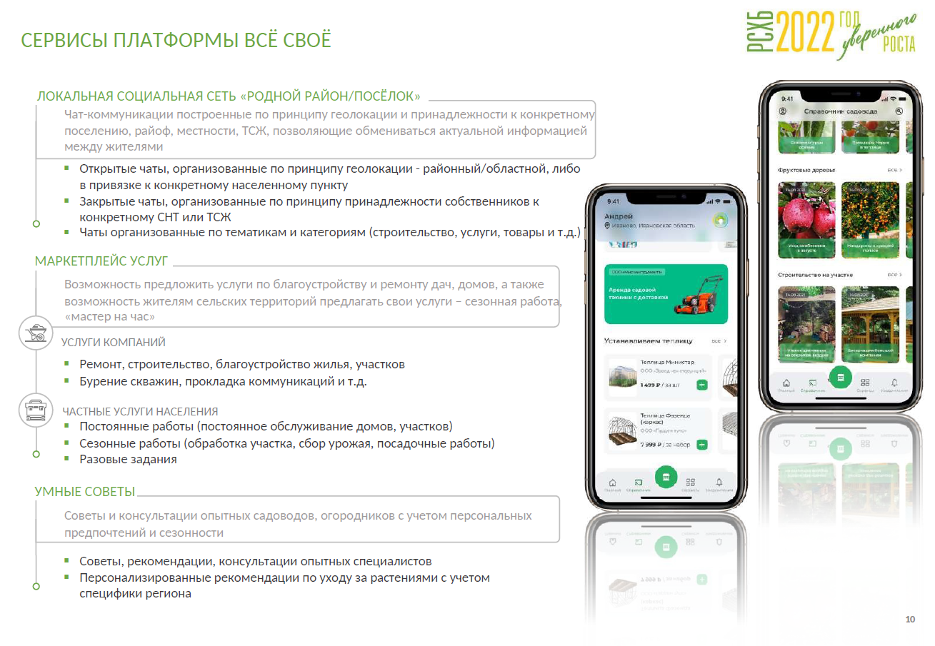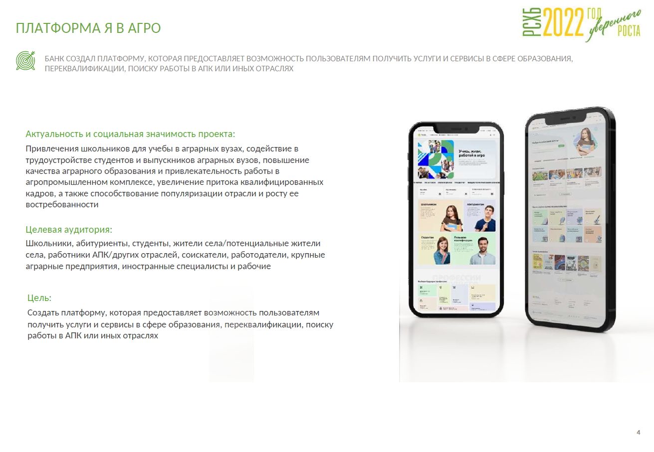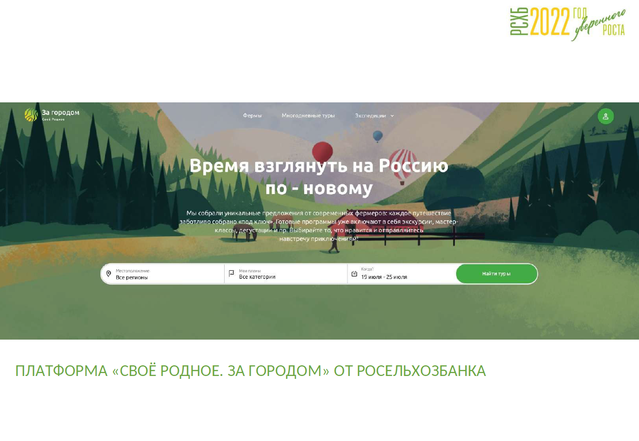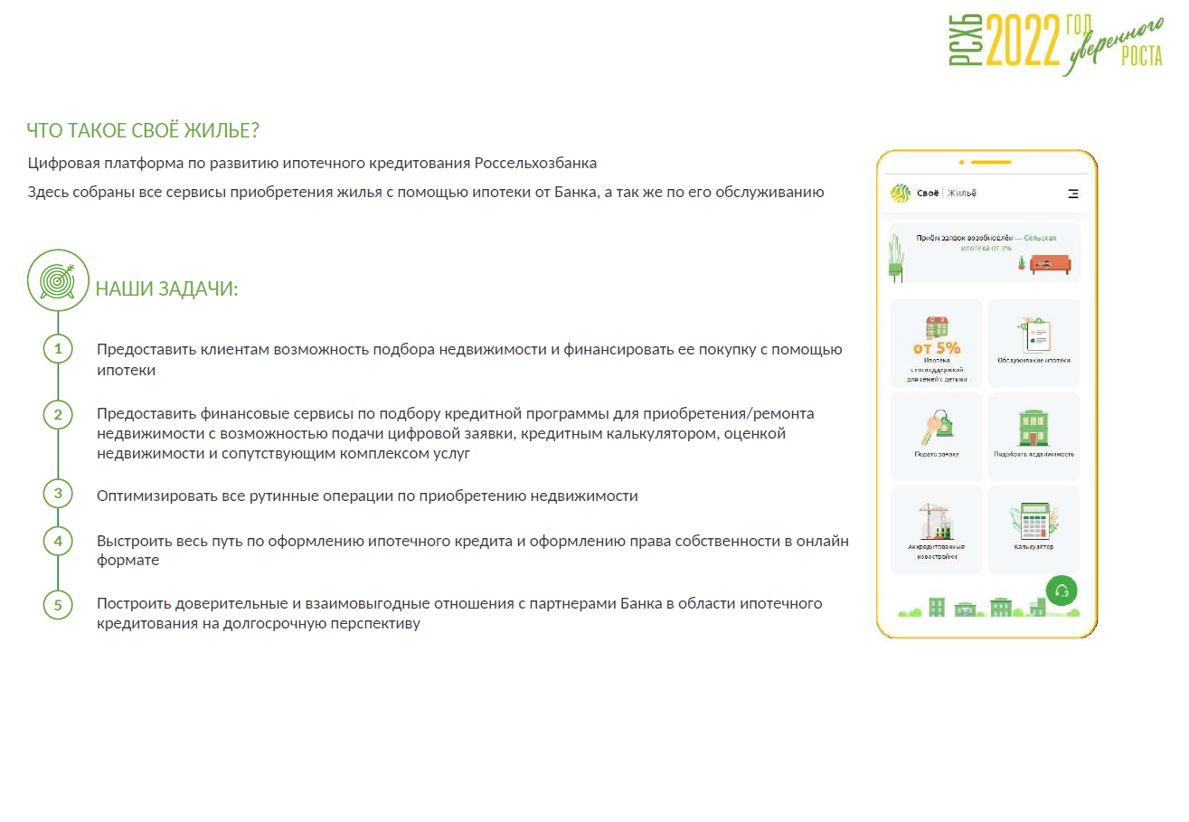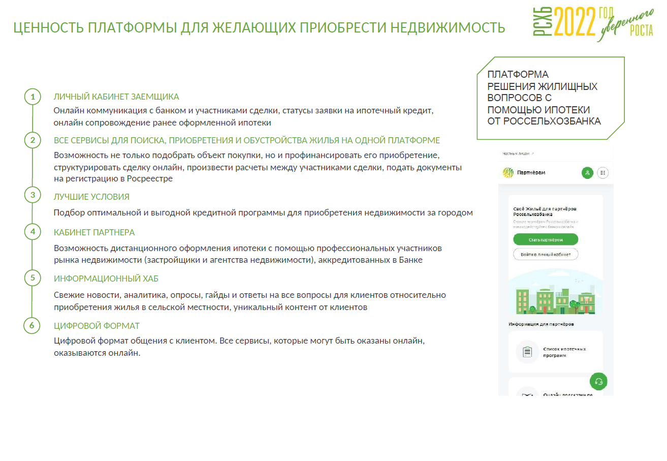 Россельхозбанк разрабатывает целую экосистему цифровых решений для сельхозбизнеса. Она объединяет несколько платформ, на базе которых можно пройти обучающие курсы и стажировки, найти работу в сфере агропромышленного комплекса, подобрать ипотечную программу, чтобы выгодно приобрести жилье в сельской местности, продать и купить фермерскую продукцию на маркетплейсах, забронировать агротуры и многое другое.