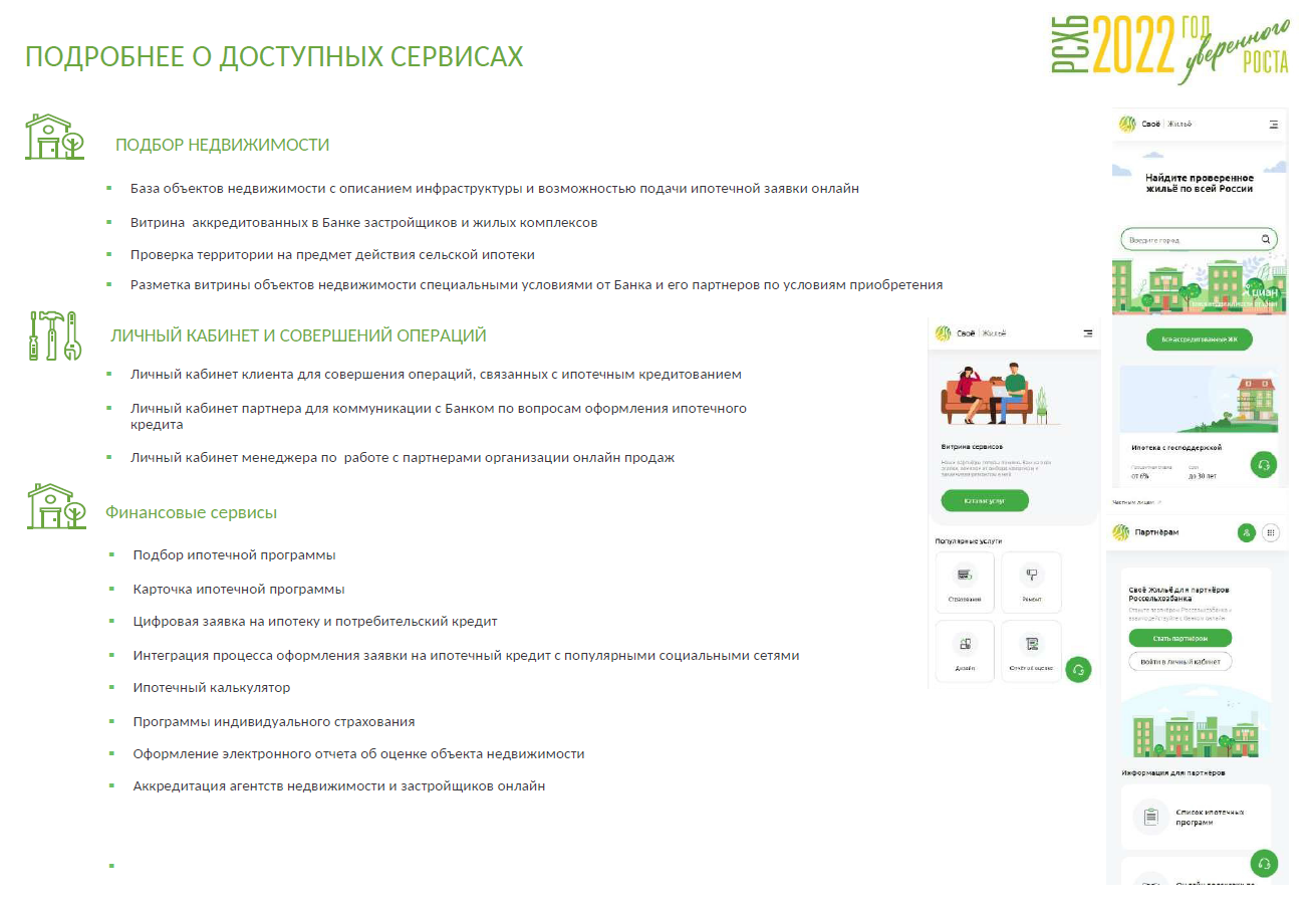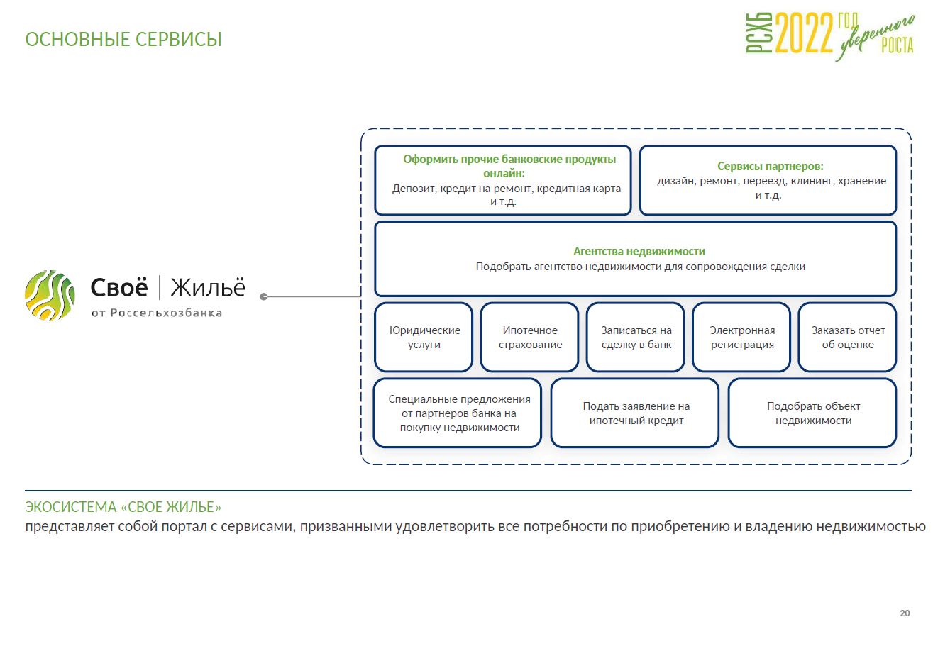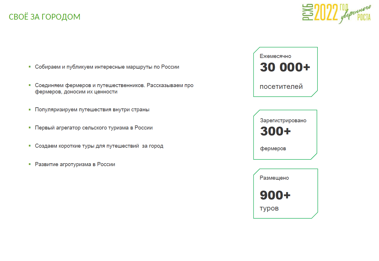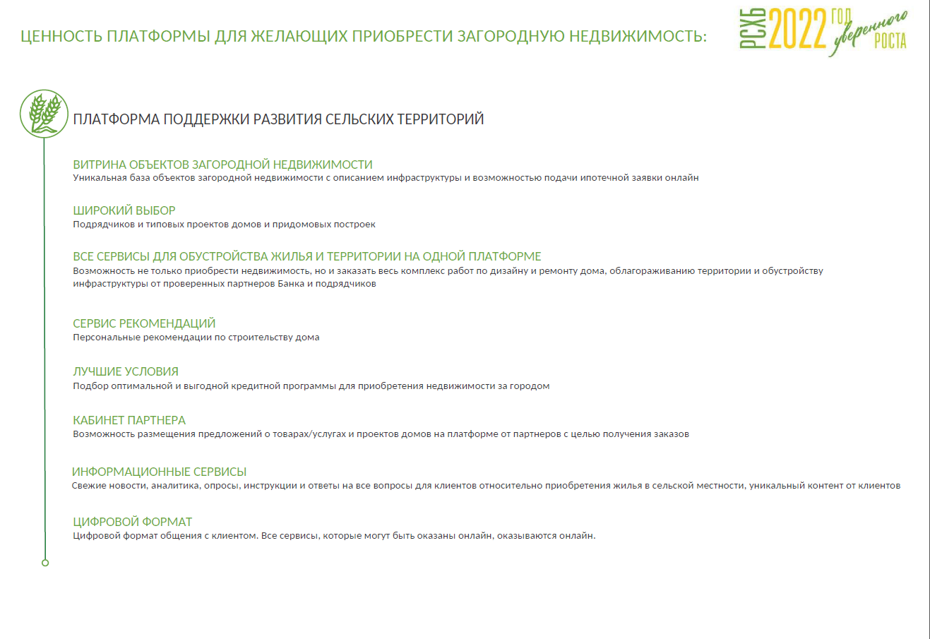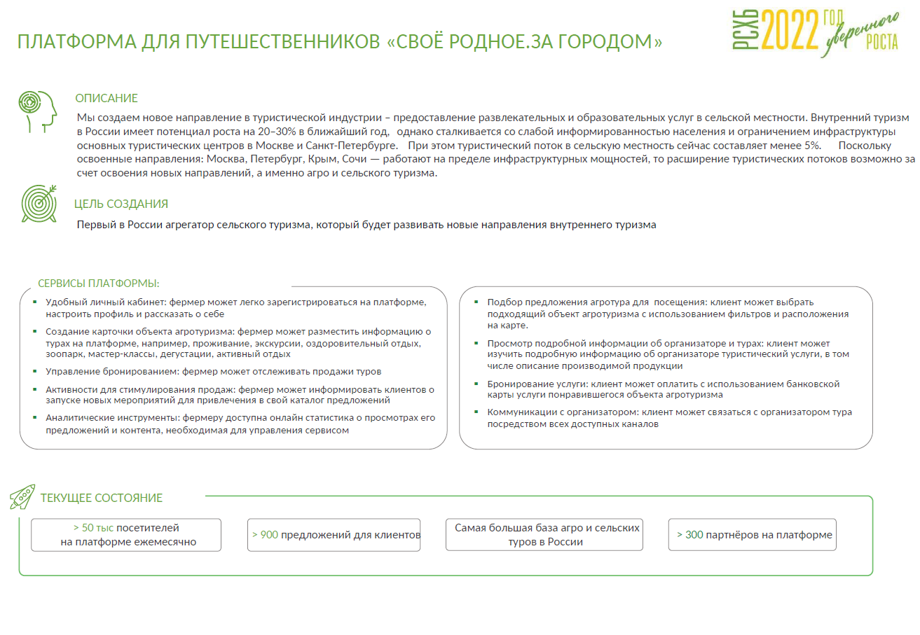 Россельхозбанк разрабатывает целую экосистему цифровых решений для сельхозбизнеса. Она объединяет несколько платформ, на базе которых можно пройти обучающие курсы и стажировки, найти работу в сфере агропромышленного комплекса, подобрать ипотечную программу, чтобы выгодно приобрести жилье в сельской местности, продать и купить фермерскую продукцию на маркетплейсах, забронировать агротуры и многое другое.