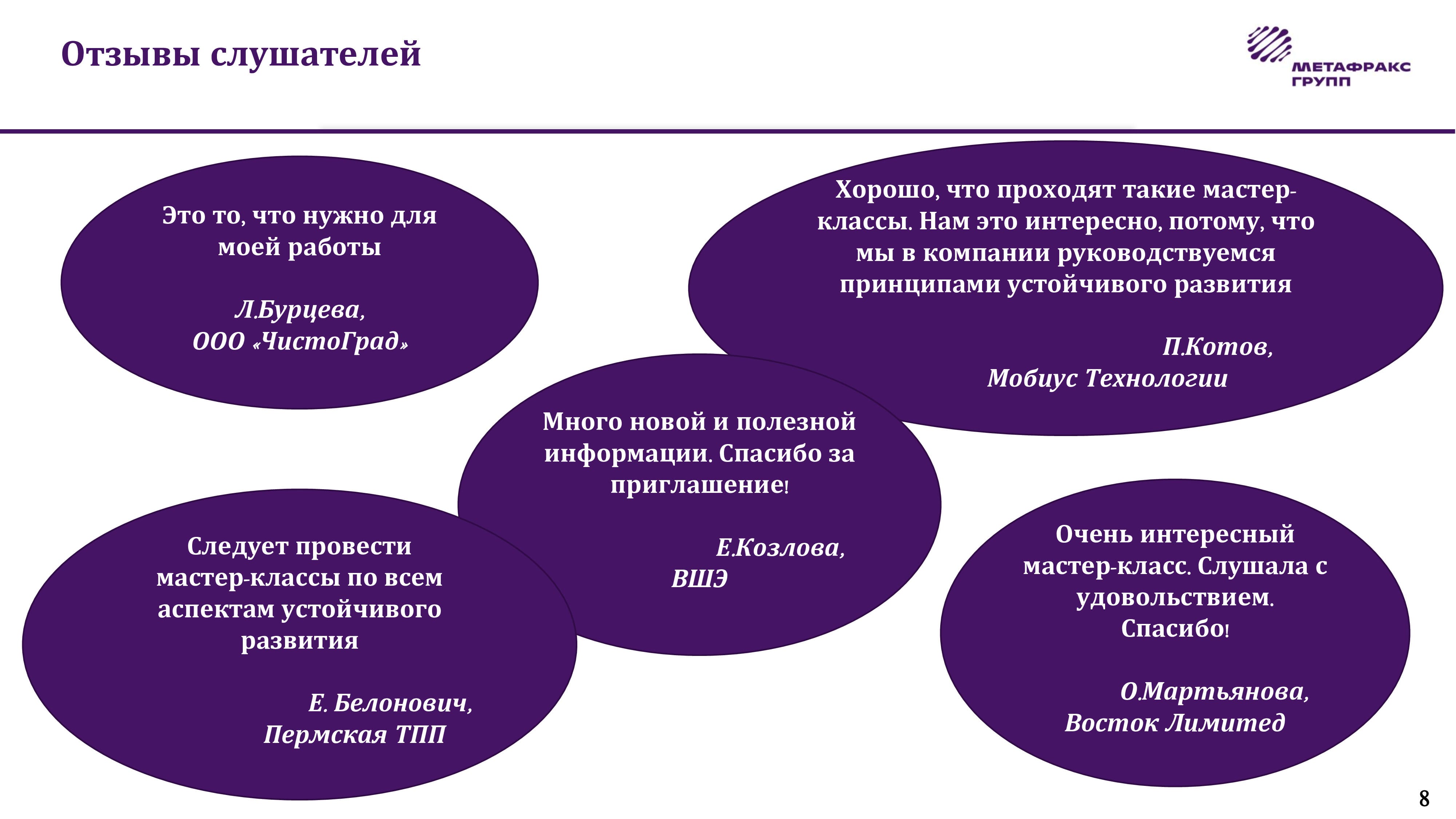Ирина Ефремова-Гарт, директор по устойчивому развитию компании «Мобиус Технологии», отметила важность использования опыта разных стран в применении принципов устойчивого развития. «В ситуации, когда очень много связей теряется, устойчивое развитие, так же как и наука, становится той сферой, в которой обмен практиками позволяет сохранить эти контакты и развивать их в конструктивном ключе», – считает она.