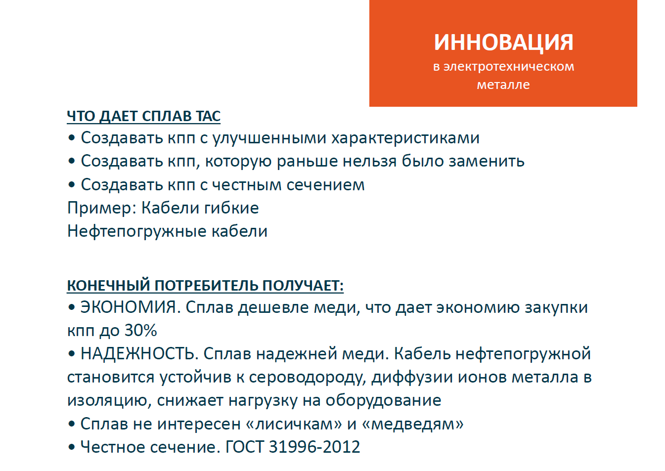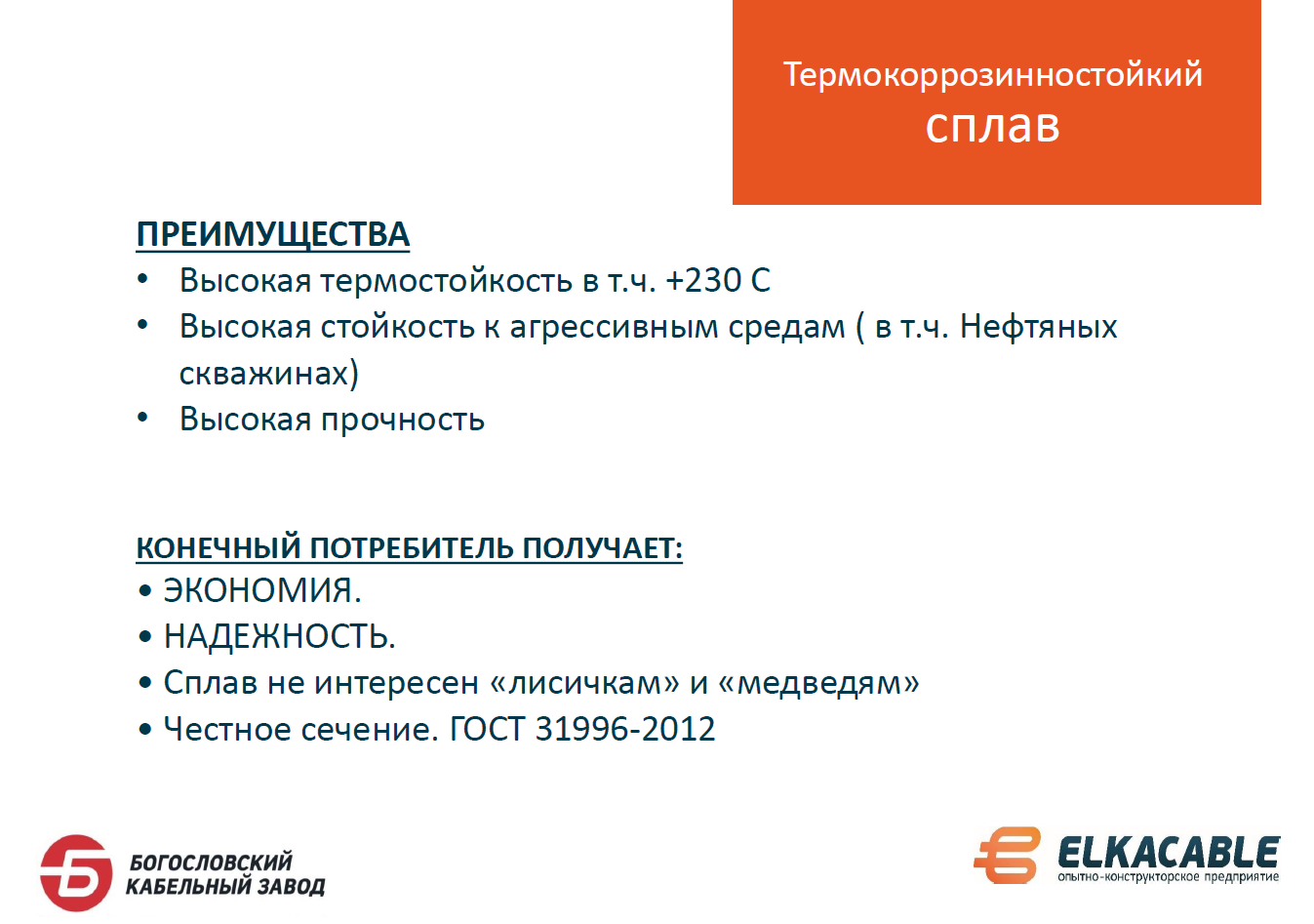 «В нефтегазодобывающей сфере сейчас есть две основные тенденции, – рассказал начальник отдела продаж ООО «Богословский кабельный завод» (БКЗ) Алексей Лобанов. – С одной стороны, количество добываемой нефти не уменьшается, а с другой – участникам отрасли нужно решать проблемы с логистикой комплектующих и оставаться в бюджете». По его словам, частично этот вопрос может быть решен за счет использования инновационной кабельной продукции серии Elkaflex и Elkapower которую изготавливает БКЗ. Она производится из термокоррозийного сплава на основе алюминия, что обеспечивает высокую прочность кабеля, его устойчивость к воздействию высоких температур и агрессивной среды, а также высокую прочность. По сравнению с медным кабелем, использование Elkaflex и Elkapower приводит к экономии от 40 до 50%. Эти кабели уже используются нефтедобывающими компаниями, такими как «Роснефть», ЛУКОЙЛ, Газпромнефть, их буровыми и сервисными подразделениями.