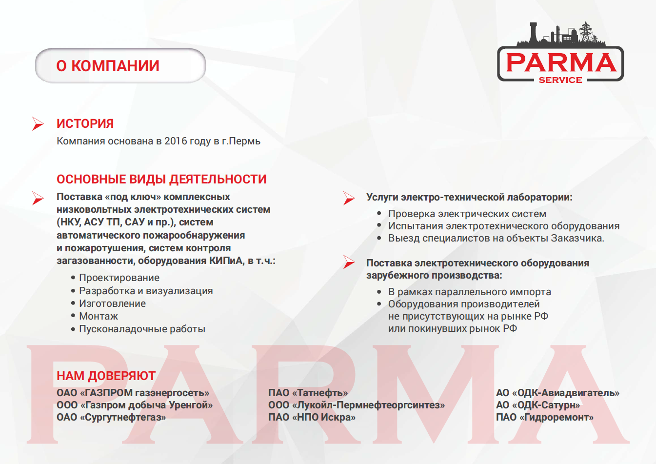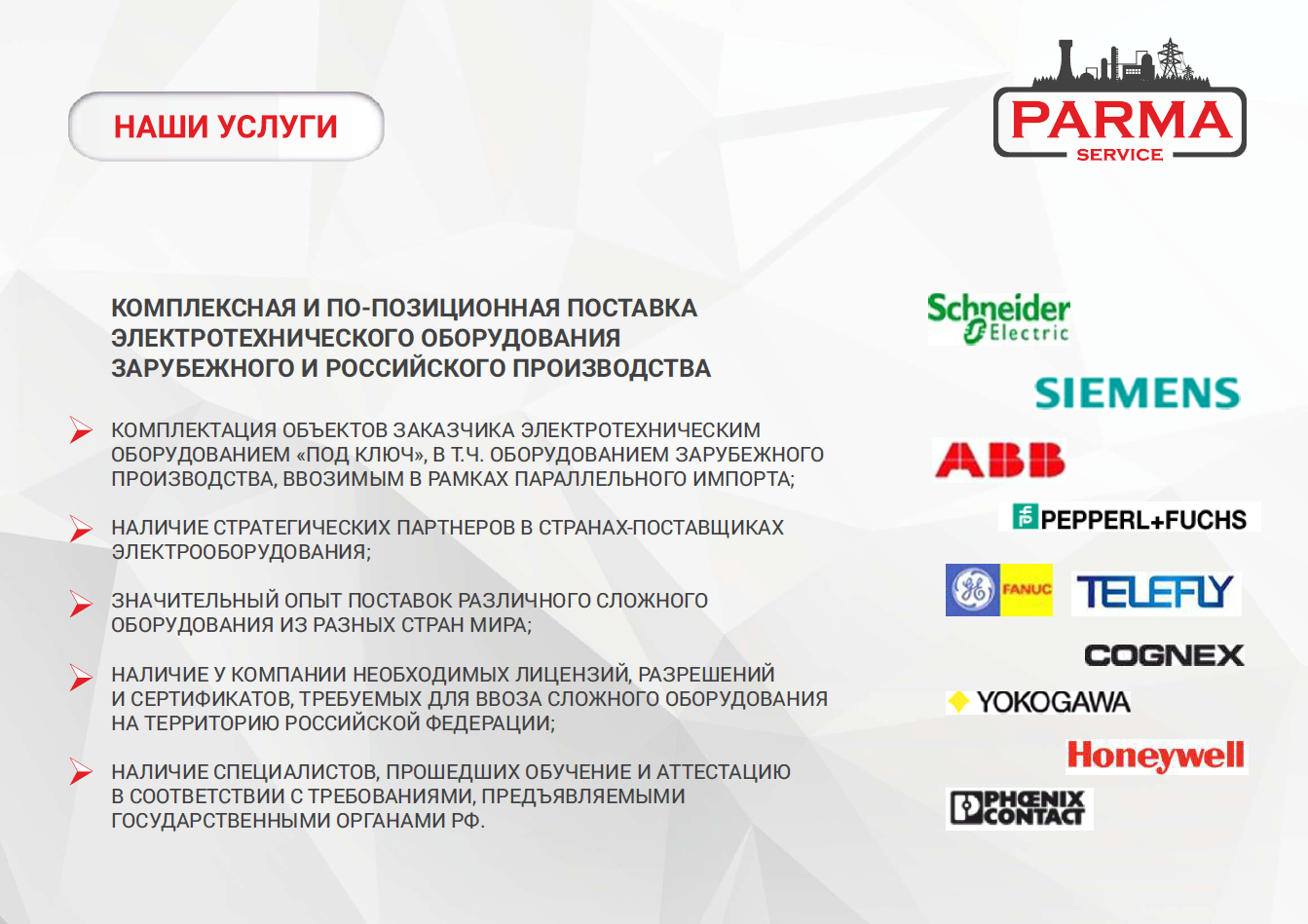 Заместитель генерального директора ООО «Парма-Сервис», которое занимается производством комплектных устройств и шкафов автоматизации, Сергей Поярко отметил, что компания всегда использовала только импортные комплектующие. Ключевыми из них являются контроллеры и пускорегулирующаяя аппаратура, которую сложно приобрести в России, поскольку их производят лишь несколько отечественных предприятий. «Но руководство нашего государства сделало нулевые ставки по таможенным пошлинам при ввозе ключевых комплектующих, – отметил он. – Это касается продукции тех компаний, которые ушли с рынка. В итоге даже при удорожании логистики поставки в некоторых случаях обходятся дешевле». Сергей Поярко уточнил, что «Парма-Сервис» наладила поставки через ОАЭ, Китай, Иран и другие страны. «Мы видим большую потребность в оборудовании, производители которого ушли из России, и готовы его поставлять», – заявил топ-менеджер.