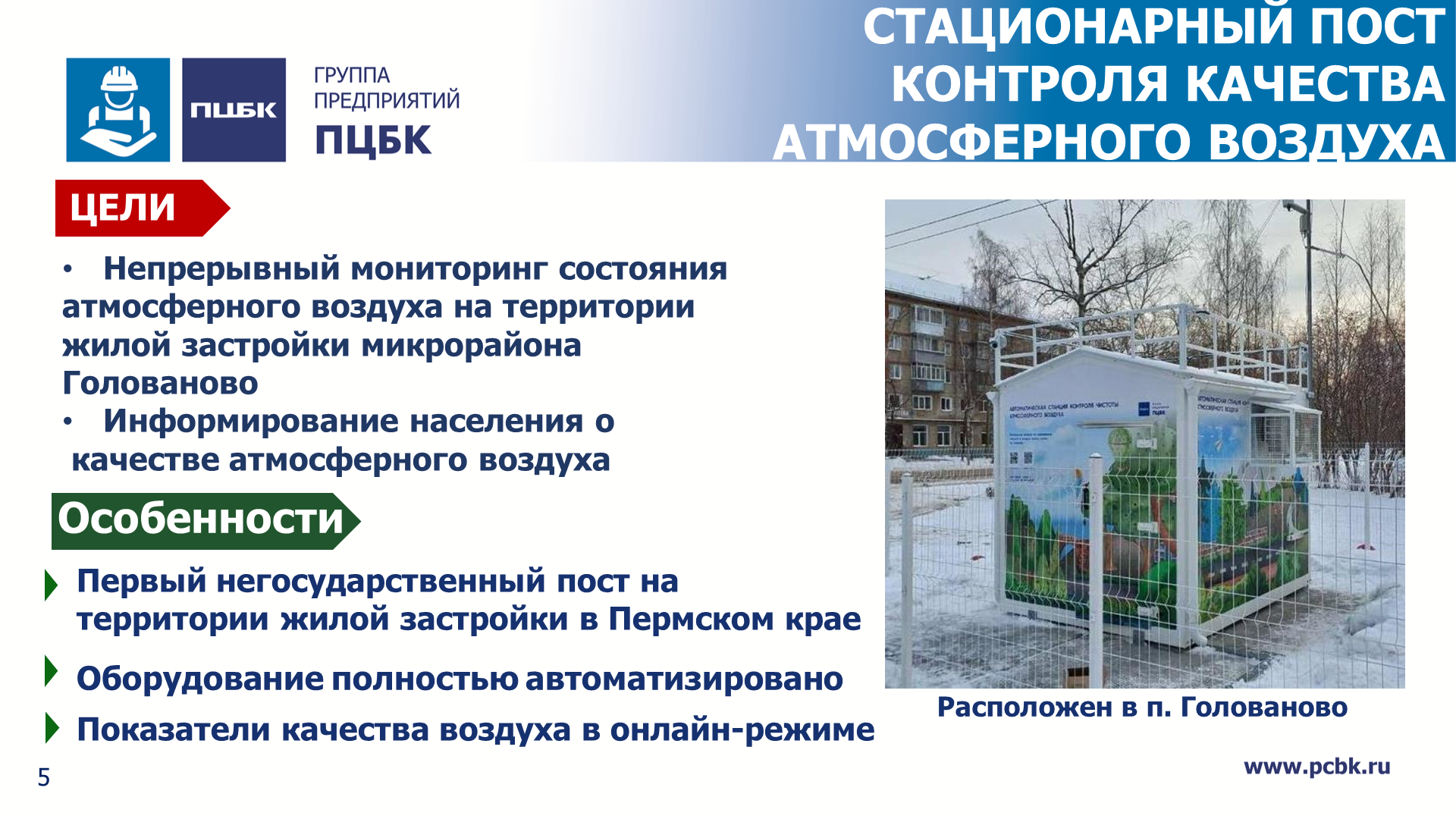 «Такой первый стационарный пост в жилой зоне в конце прошлого года группа предприятий «ПЦБК» разместила в микрорайоне Голованово. И на днях показатели с поста онлайн стали выводиться на главную страницу сайта нашего управления. Этот проект мы хотим и дальше развивать, на своем ресурсе создать карту, на которой будем транслировать данные с постов промпредприятий», – говорит Дмитрий Андреев.