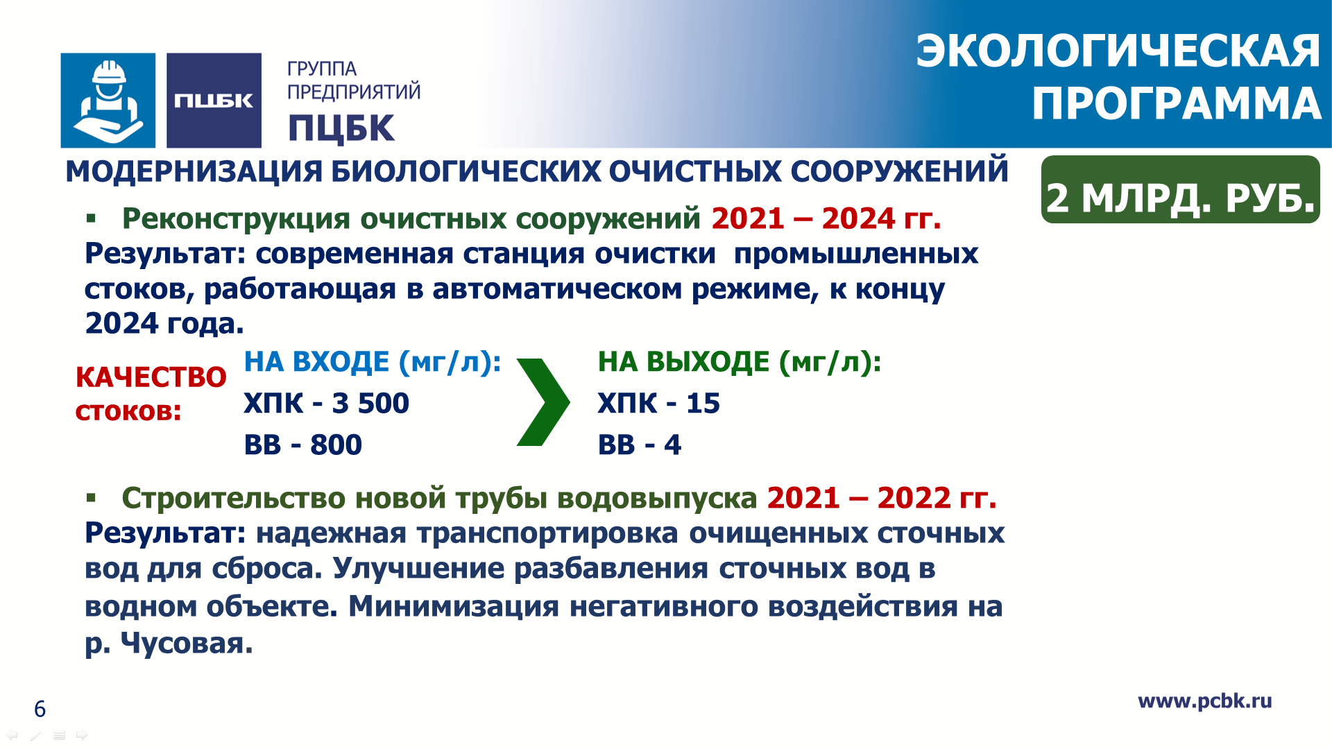 Подробно информацией о природоохранной деятельности ПЦБК с собравшимися поделилась советник генерального директора группы предприятий по формированию экологической политики Анна Антонова. По ее словам, общий объем инвестиций в экологические проекты ПЦБК на период 2022–2025 годов составит более 5 млрд руб. Уже в этом году в рамках модернизации биологических очистных сооружений (БОС) будет построен новый водовыпуск, что повысит надежность транспортировки очищенных сточных вод до места сброса в Чусовую. До 2024 года предприятие вложит в реконструкцию БОС 2 млрд руб.